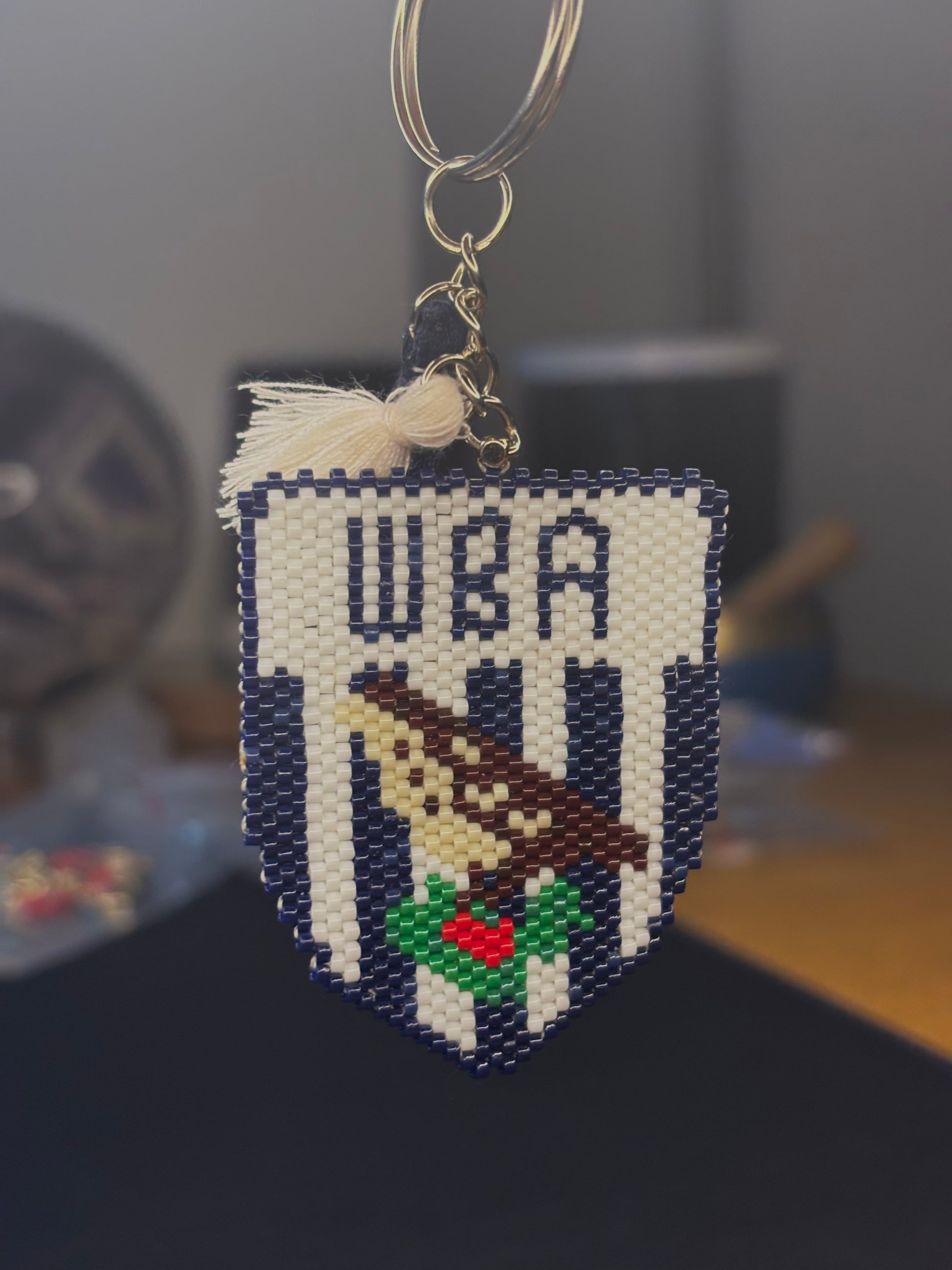 Show your support for West Bromwich Albion with this handmade Miyuki keyring featuring the iconic club badge. Crafted with precision using high-quality Miyuki Delica beads, this keyring showcases the club's emblem in vibrant colours and intricate detail.
