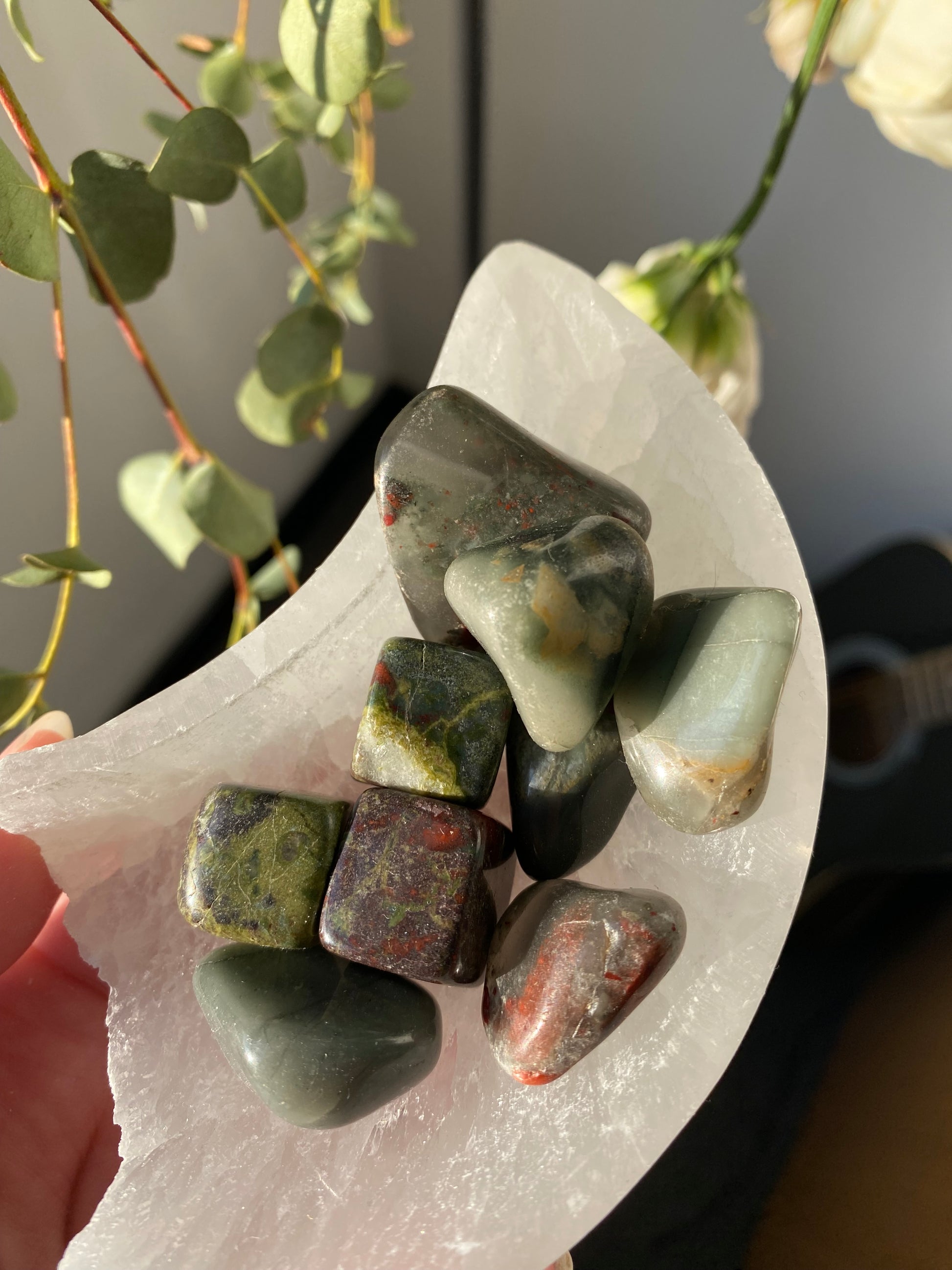 Blood stone tumble stones